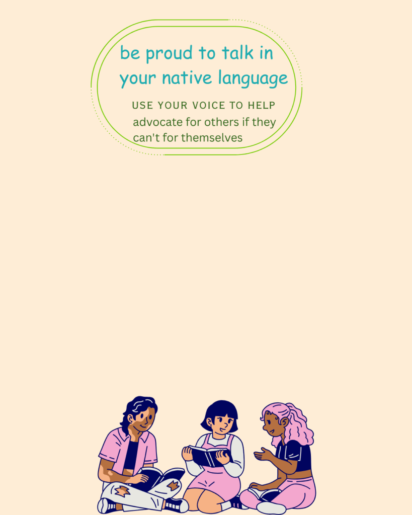 Be courages to speak your native language. Be free and embrace what it means to be you.