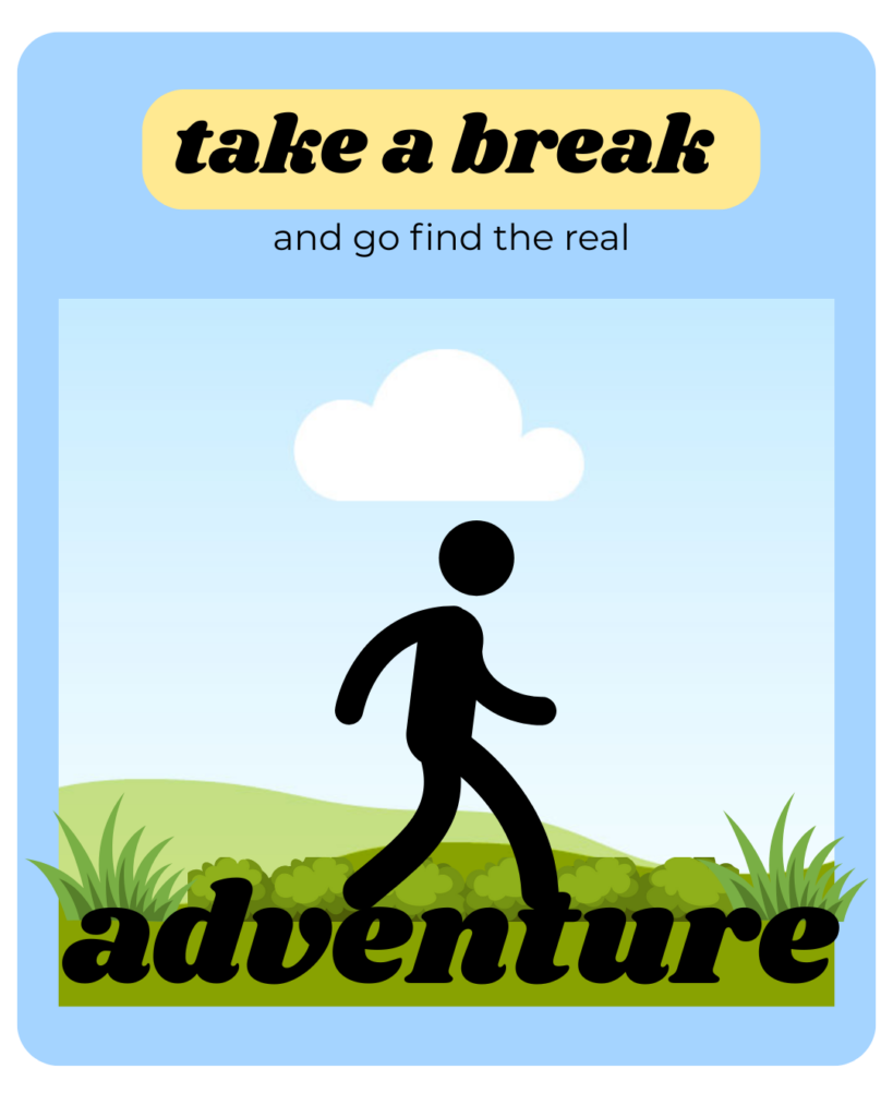 Taking a break is simple, easy, and therefore often overlook. It is in this break that you break away from unhealthy habits. It is in this break that you have the opportunity to realized this for yourself. Until you realize it in a break, you will have no time or attention to recognize the real adventure.